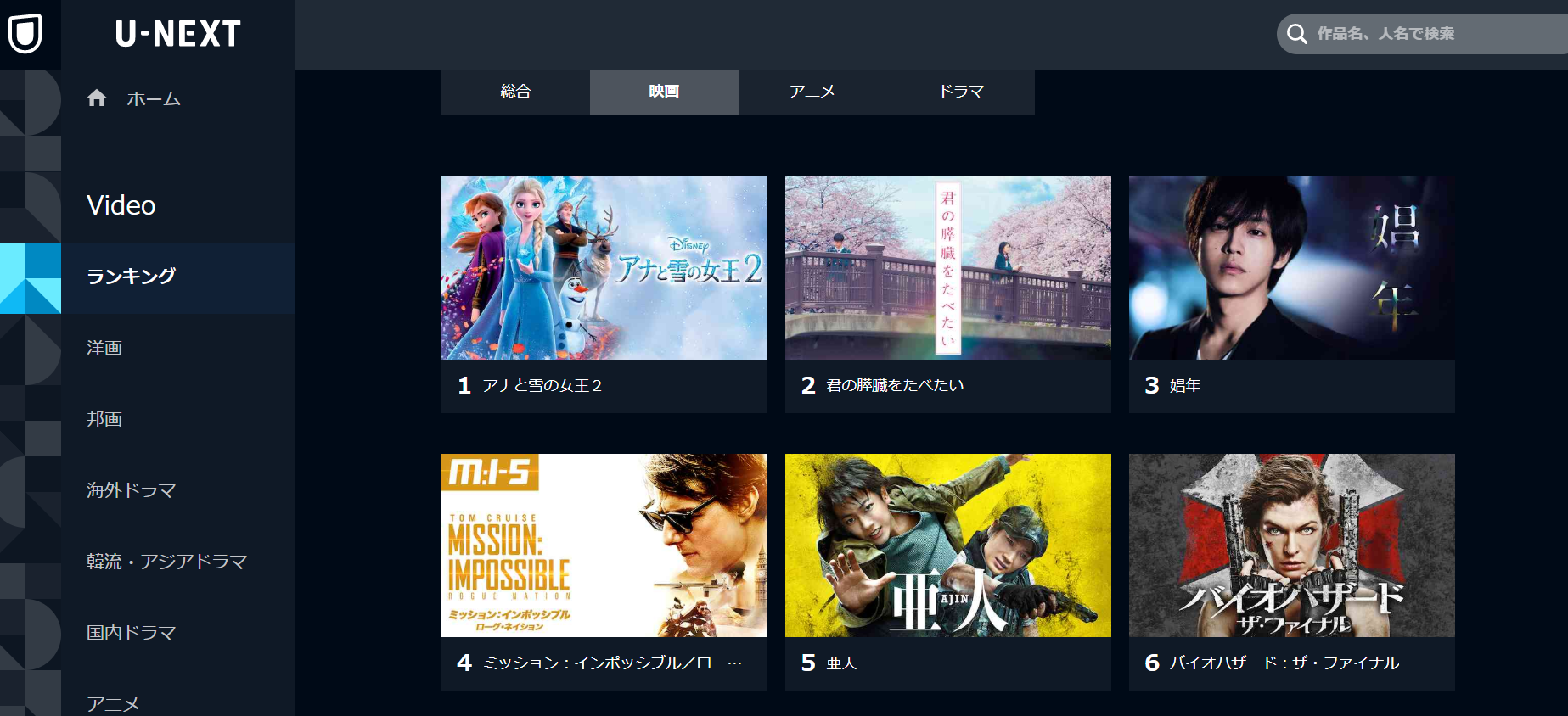 U-NEXTは映画やドラマやアニメが見放題なのですが、